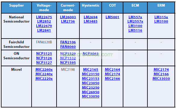 電壓模式控制的最新產品示例包括美國國家半導體制造的LM2267x Simple Switcher® 系列以及 Micrel 制造的 MIC472x和 MIC468x 系列。 這些部件包括內部補償,因此可在各種應用中方便地使用它們。