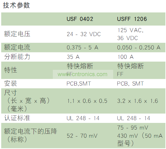 USF 0402 和 USFF 1206 SMD 保險絲