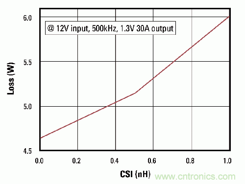 更高的功耗會導致轉換效率降低。另外,由于雜散電感,電路出現尖峰電壓的可能性很高。如果這些尖峰電壓超過器件的額定值,可能會引起故障。