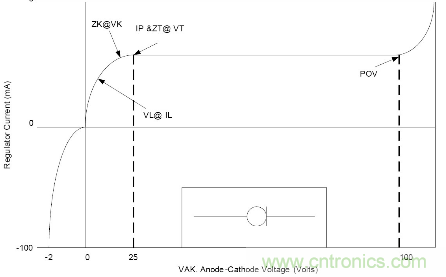 它在某一個電壓范圍內有一段恒流區間, 在這個區間, 流經的電流幾乎不變, VL為到達IL的電壓值, IL大約為0.8Ip.