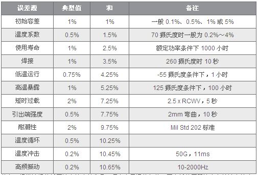 表1 電阻容差可相加