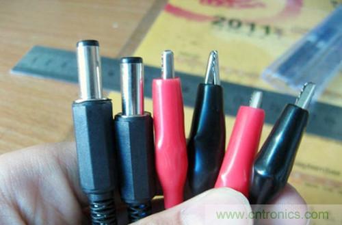 截取50CM的花皮排線,焊接好DC插頭。注意先把后面那個黑色塑料的外殼套在線上。