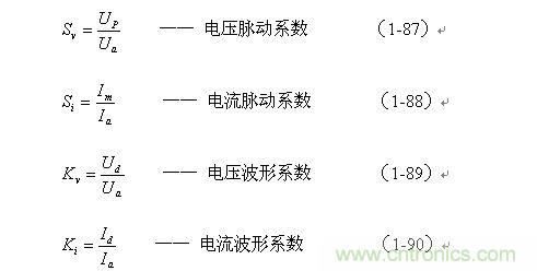 因此,電壓和電流的脈動系數Sv、Si以及波形系數Kv、Ki分別表示為: