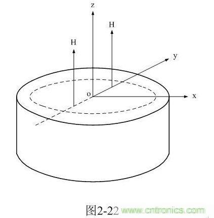 從圖2-19可以看出,磁場強度由H = Hz:和Hx = Hy = 0組成;對于電場強度,其指向平行于Y軸為E = Ey,Ex = Ez = 0。因此,上面兩式又可以改寫為: