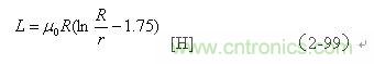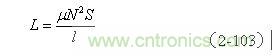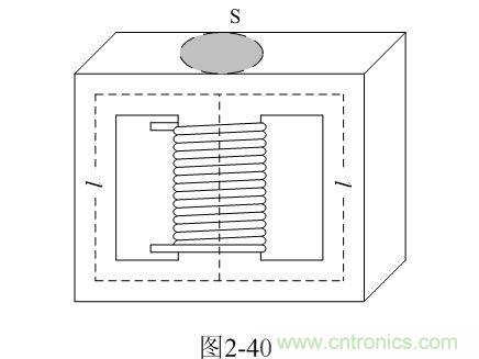 【說明】上式是用來計算變壓器線圈電感的計算公式。由于變壓器鐵芯的磁回路基本是封閉的,變壓器鐵芯的平均導磁率相對來說比較大。鐵芯的導磁率一般在產品技術手冊中都會給出,但由于大多數開關變壓器的鐵芯都留有氣隙,留有氣隙的磁回路會出現磁場強度以及磁感應強度分布不均勻,因此,(2-103)式中的導磁率只能使用平均導磁率,技術手冊中的數據不能直接使用。
