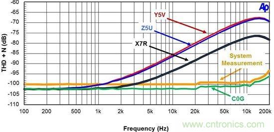 此外,電容器的電介質屬性可能會引發更多與頻率有關的失真。您可在圖 3 中看到這些影響。