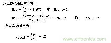 注意合理匝數取整。這個結合自己項目實際情況,取整后,變比會有所變化,Dmax也會有所變化,所以需要用取整后的參數進行核算Bmax。