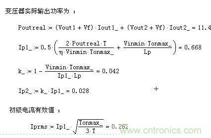 K值就是上面說的電流連續比上面計算書定義的Ip2是電流上升前沿Ip1是電流上升后沿。所以當K=0的時候變壓器是工作在臨界模式以下的為防止計算出錯一般習慣取0.001.