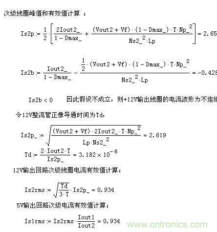 上面是次級電流有效值的計算,斷續模式的,并且加入了次級電流連續或者斷續的判斷,(判斷這一步其實沒有必要,因為變壓器初級連續,次級也連續,初級斷續,次級也斷續。)