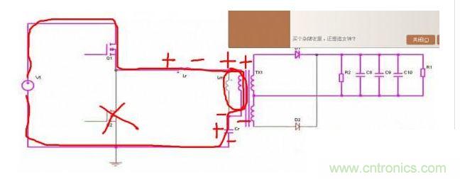 注意去理解上管Mos開通,勵磁電感兩端電壓被鉗位了,鉗到n*(Vout-Vf)。這個過程大家一定要自己想明白。n是變比,Vf是二極管正向壓降。