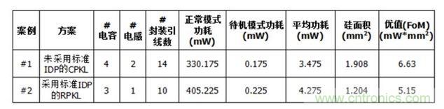 表1就以下要素總結了兩個案例所存在的性能差別:物料清單(BoM)、硅面積、功耗和FoM值。