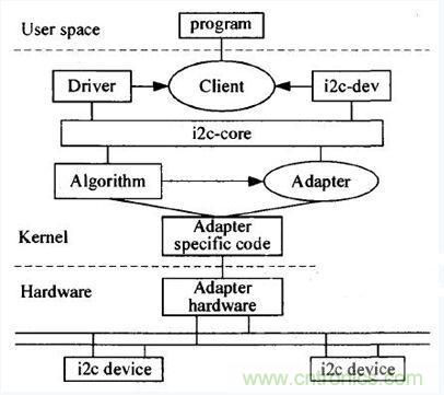 圖5 Linux內核I2C總線驅動程序體系結構