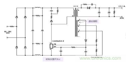圖5,采用InnoSwitch-EP IC的方案,BOM大大簡化