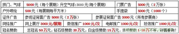 1、各種展位價(jià)格表(圖片僅供參考)