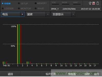 逆變器在將直流轉(zhuǎn)換成交流輸出之后,交流的電能質(zhì)量是檢測(cè)逆變器的一個(gè)很重要的指標(biāo)。輸出端的交流如果存在電能質(zhì)量問題,不僅僅是影響逆變器使用效率,減少逆變器使用壽命,更有可能給使用者帶來生命財(cái)產(chǎn)的安全隱患。例如,由逆變器輸出的交流電往往含有諧波,下圖為E6500對(duì)交流的諧波檢測(cè)。