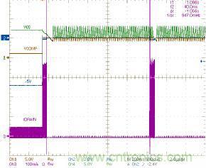 再按下開關時,ON引腳被強制連至SGND引腳,且連接時間大于DEB_ON,芯片退出零功耗模式。芯片通過軟啟動恢復開關操作,重新開始輸出功率。在實際應用中,ON和OFF引腳可以由微控制器控制,如圖3所示。實際上,這些引腳的上拉電阻有幾微安的驅動能力,可在零功耗模式供給微控制器。
