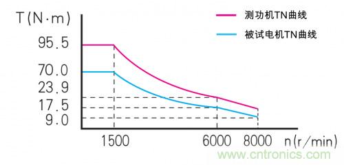 而要模擬被試電機(jī)的實(shí)際運(yùn)行工況,那測(cè)功機(jī)的加載能力,必須覆蓋被測(cè)電機(jī)的全部工況范圍,那才能滿足模擬“所有工況”的要求。簡(jiǎn)單來(lái)說(shuō),就是測(cè)功機(jī)的機(jī)械負(fù)載的TN曲線,必須覆蓋被試電機(jī)的TN曲線,這樣才能把被試電機(jī)的全程TN特性測(cè)試出來(lái)。