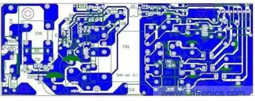 A)功率大電流地線與控制回路地線共用同一走線,由于PCB覆銅線并非理想導體,它總是可以等效成電感或電阻,當功率電流流過了和信號控制回路共用的PCB線,在PCB上產生電壓降落,特別是采用多點接地時,由于控制電路各節點分散在不同位置,功率電流引起的電壓降對控制電路疊加了擾動,使電路發出噪音,這問題通常采用單點接地可以得到改善。