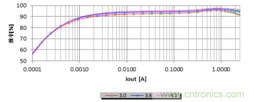圖4所示為不同輸入電壓的效率曲線。在VOUT = 5V和VIN = 3.6V時,TPS61230A具有3A的出色輸出容量;效率可高達94%。