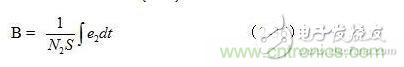 我們再來看怎樣對磁通密度B進行顯示。根據(jù)法拉第電磁感應(yīng)定律,在交變磁場的作用下,變壓器T2次級線圈中感應(yīng)產(chǎn)生的電動勢e2大小為: