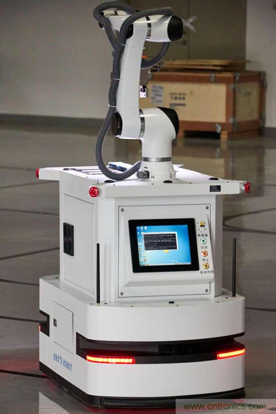 Star機器人是大族機器人產(chǎn)品線的一款明星產(chǎn)品,該機器人融合了大族自有的移動機器人、機械臂、視覺系統(tǒng)、力控夾具等核心部件,可以實現(xiàn)手臂末端±0.2mm的重復(fù)抓取精度。機器人運行過程中通過磁帶與激光SLAM混合導(dǎo)航,運行靈活,機器人可以實現(xiàn)前進、后退、原地轉(zhuǎn)向等動作。機械臂臂展可以達到950mm。