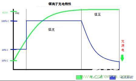 電池在充電時通常經(jīng)歷兩個階段:恒定電流(CC)和恒定電壓(CV)。圖1所示為4.2V鋰離子(Li-ion)電池的典型充電曲線。當大部分能量從充電器傳輸?shù)诫姵貢r,CC大致用于充電的前67%時間。在剩余充電時間的最后33%內(nèi),則是恒定電壓,以充分充電并保持電充滿。考慮到放電電流,并保持電池電壓完全充電,一些充電器在CV期間泵送小電流(也稱為涓流充電)。電池完全充電所需的時間取決于其容量和最大允許充電電流,是電池化學和環(huán)境溫度的函數(shù)。例如,如果您有一個容量為3000mAh,充電率為0.8C的鋰離子電池(其中C表示在一小時內(nèi)為電池充電所需的電流,這是電池制造商建議延長電池壽命的默認電量),電池需要兩到三個小時才能完全充滿電。
