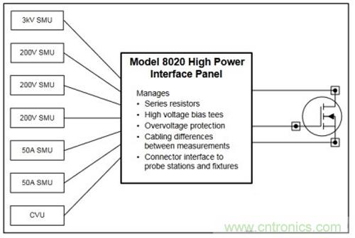在對(duì)功率半導(dǎo)體器件執(zhí)行全面的DC I-V和C-V測(cè)試時(shí),為減少遇到的問題,許多工程師采用高功率接口面板(圖3),最大限度地減少主要測(cè)量類型之間的連接變化。可以通過T型偏置進(jìn)行I-V和C-V測(cè)量,而不需改變連接,從而減少用戶出錯(cuò)的機(jī)會(huì)。
