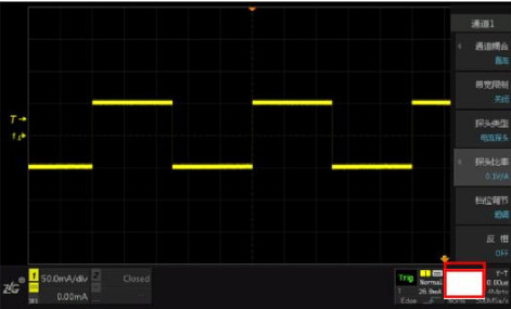 方波響應主要是用來簡易測試電流探頭幅頻響應特性的測試方法。電流探頭能夠完整的重現方波波形,不出現畸變,說明探頭的幅頻響應平坦,是良好的。