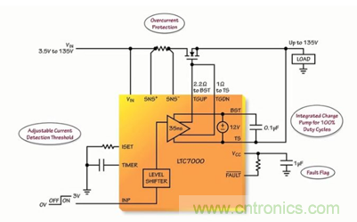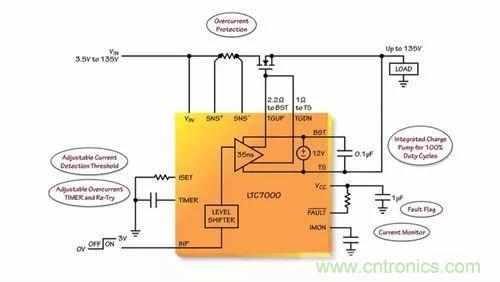 由此可見,作為一款靈活和堅固的器件,可使汽車和工業制造商提高其系統的性能和可靠性。LTC7000 所具備的高達 135V 的電壓范圍、內置的保護功能、強大的驅動器、快速接通和關斷時間能力,使得制造商能夠開發出為客戶增添附加值和可靠性的系統。因而它主要運用于靜態開關驅動器、負載和電源開關驅動器、電子閥驅動器以及高頻高壓柵極驅動器。