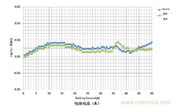 許多因素都會影響系統精度,包括溫度漂移、電壓漂移和偏移電壓。電池測試儀參考設計使用三點校準來計算不同的影響來源或任何錯誤。圖2顯示了在寬電流范圍內實現的滿量程精度。該系統在電池充電時以降壓模式運行,放電時以升壓模式運行。