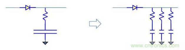 ?可以采用低ESR的電解電容替代普通電容,或者用多個電容并聯(lián)來替代單 個電容。