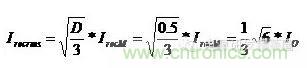 (2)流過輸出整流器的有效值電流與峰值電流的關系:
