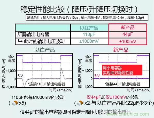 但是與降壓型轉換器相比,以往的升降壓型轉換器控制復雜且響應性能較差,輸出需要大容量電容器。升降壓轉換器的缺點已是長期存在的問題。