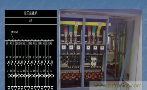 每組出線有:一個電流表;一個塑殼斷路器;一個電流互感器