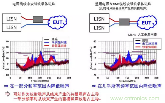 對于放射噪聲,也調查問題源是共模傳導模式還是差模傳導模式。(150kHz-30MHz帶域)