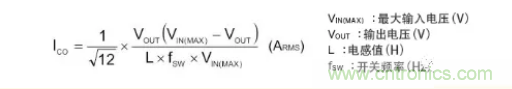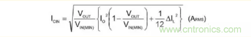 流向輸入電容器的紋波電流實(shí)效值ICIN用下列公式表示。