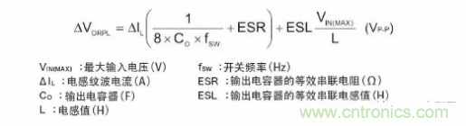 輸入紋波電壓ΔVIN用以下公式計(jì)算。