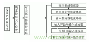 敏感線路主要是指控制電路和直接與干擾測量設備相連的線路。要降低干擾水平,最簡單的方法就是增大干擾源與敏感線路的間距。但由于受電源尺寸的限制,單純的增大間距并非解決問題的最佳途徑,更為合理的方法是根據干擾電場的分布情況將敏感線路放在干擾較弱的地方。PCB抗干擾布局設計流程如圖6所示。