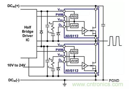 圖4:如圖所示,Navitas 的 NV6113 可并行部署,用于半橋拓撲結構。(圖片來源:Navitas Semiconductor)