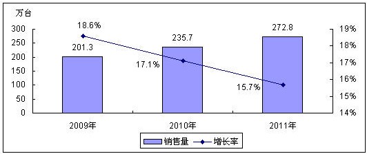 圖1 2009-2011年中國數(shù)碼攝像機銷售量預(yù)測