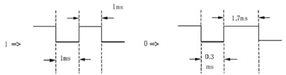每個(gè)Byte的格式如圖3,由10bits組成,第一個(gè)bit是STARTbit固定為HI,最后一個(gè)bit是Stopbit固定為L(zhǎng)OW,第2-9bit實(shí)際發(fā)送的數(shù)據(jù)(最先收到的bit為L(zhǎng)SB),由于是負(fù)邏輯數(shù)據(jù)需要反相處理(LOW=1、HI=0).