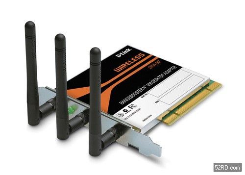 D-Link友訊的Pren/11n型無(wú)線網(wǎng)路卡:RangeBoosterN650DesktopAdapterDWA-547,圖中可看出三個(gè)直豎天線。