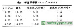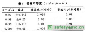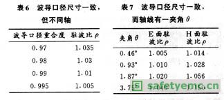 以23mm×10mm的波導為例,在f=10GHz時不同類型的安裝誤差所引起的駐波比見表4-表7。