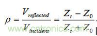 等式假設信號在特征阻抗為Z0的傳輸線上傳送遇到了不連續的阻抗Zt。注意如果Z0=Zt,反射系數為0,意味著沒有反射。Z0= Zt這種情況就稱為匹配的端接。