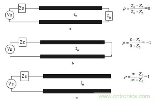 圖4.(a)端接(b)短路(c)開路 三種情況下的反射系數