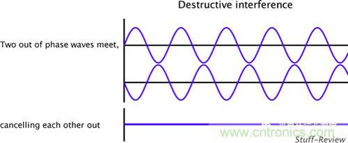 【導讀】ANC技術的原理并不深奧,高中物理就教過,就是波的干涉。如果大家對高考復習還記憶猶新的話,一定還記得如果兩列波幅度相同,相位相反,則它們干涉的結果是互相抵消,看不到波了。
