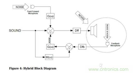 既然兩種方案各有利弊,那么把它們結合起來如何?這就是混合模式的有源噪聲消除,既使用前饋又使用反饋,系統(tǒng)設計得當?shù)脑捒梢該P長避短,即避免風噪又能抵消高頻噪聲。