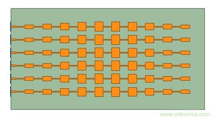 3 串饋微帶貼片線陣結構示意圖