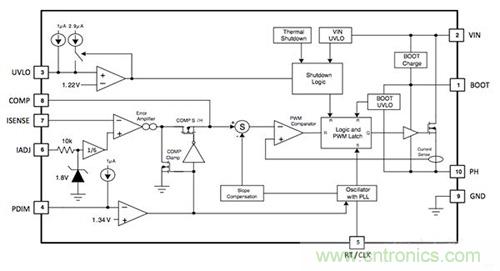 圖 3: TPS92513/HV LED 驅動器的功能框圖。