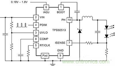 圖 2: TPS92513/HV LED 驅動器典型應用的簡化原理圖。